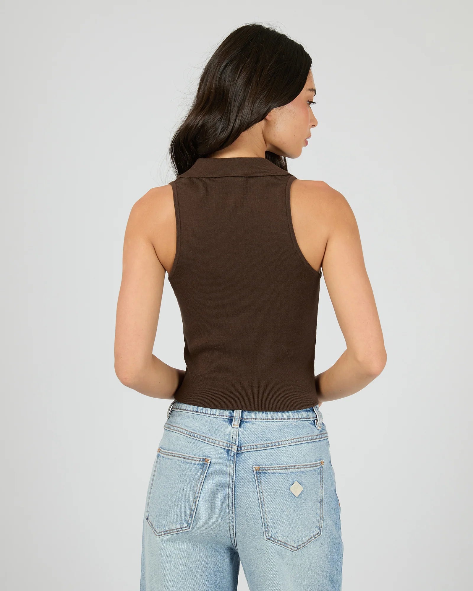 The Carrie Knit Top in Brown combines sophistication with comfort for a polished yet relaxed look. Crafted from soft, stretchy fabric, this top features a stylish knit collar that adds a refined touch to your outfit. Its fitted design offers a flattering silhouette, making it perfect for both casual and slightly dressier occasions. Whether paired with jeans for a chic daytime look or tucked into a skirt for an evening out, this versatile top is a wardrobe essential.