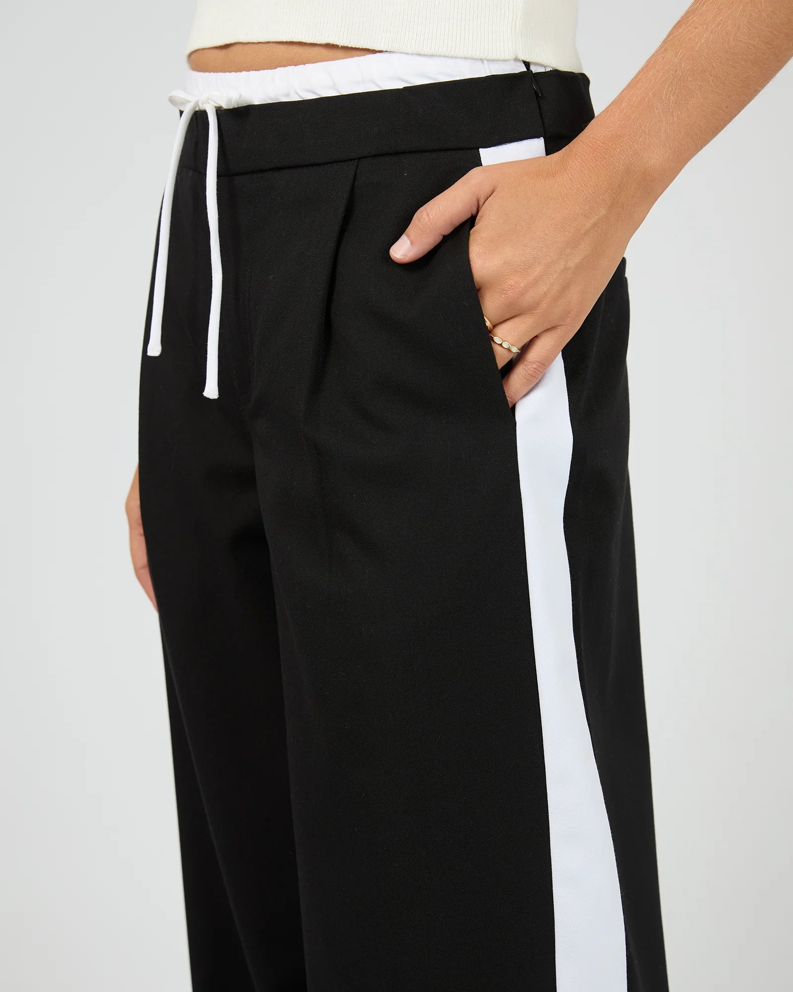 A modern take on relaxed tailoring, The Beckett Pant in Black, designed both comfort and everyday polish. Cut in a relaxed fit with a straight leg, it features contrast side panel detailing that adds a sporty, contemporary style. The elasticated waistband with adjustable drawcord ensures a comfortable, flexible fit, while functional pockets add practicality. These pants move easily while maintaining structure. Perfect for styling with knits, or tees for effortless, off-duty dressing.