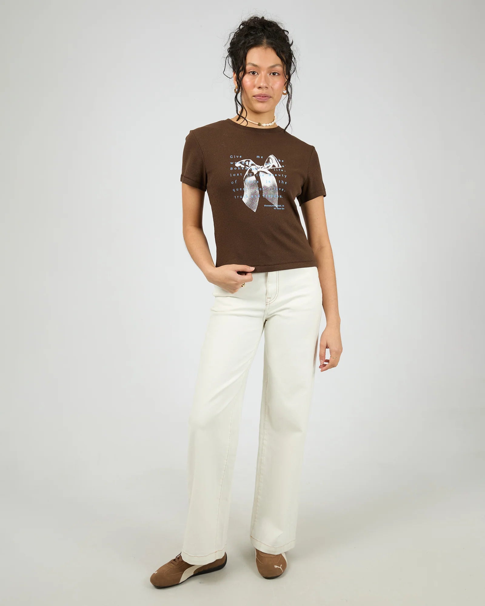 The Clover Baby Tee features a stylish front print design with a super cute aesthetic. Crafted from a premium blend of 80% cotton and 20% linen, this baby tee offers both comfort and flair for casual wardrobe styling.
