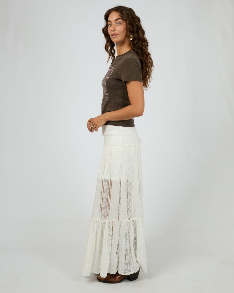 Whimsical and earthy, the Fortune Baby Tee features a blush pink boho graphic on soft brown cotton pointelle for a vintage-meets-dreamy feel. With its baby tee fit and delicate texture, it pairs perfectly with a denim mini skirt or a flowing maxi skirt for a touch of carefree charm.