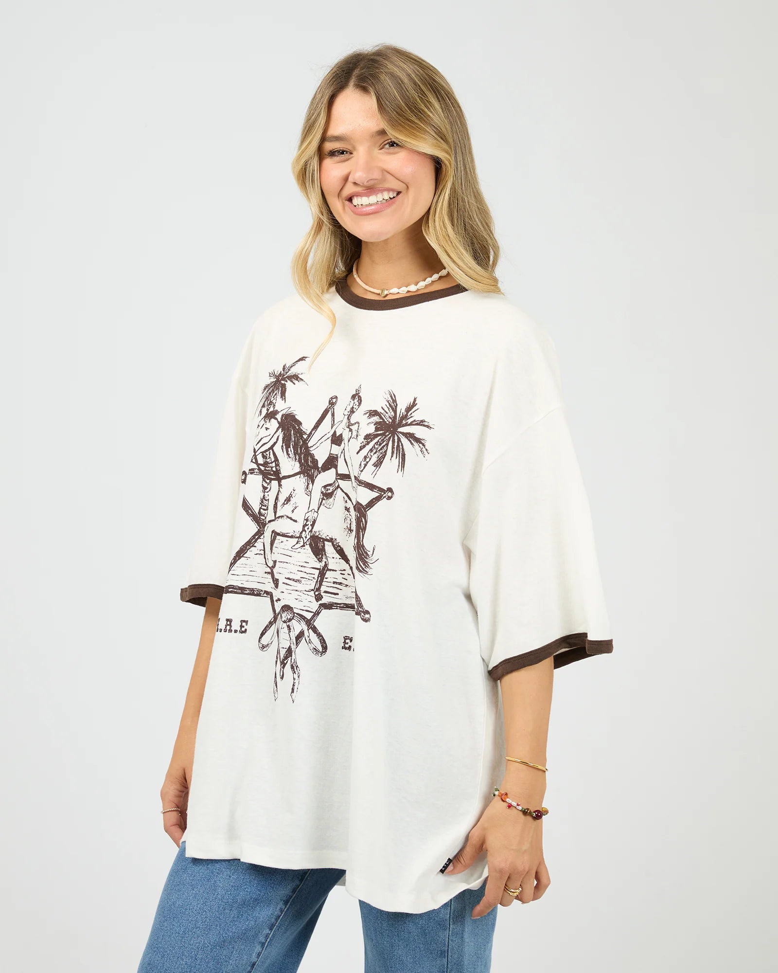 The Pony Island Tee offers a relaxed fit with short sleeves and a comfortable crew neckline, making it an easy choice for everyday wear. Its soft fabric and casual style provide comfort and versatility, perfect for layering or wearing on its own.