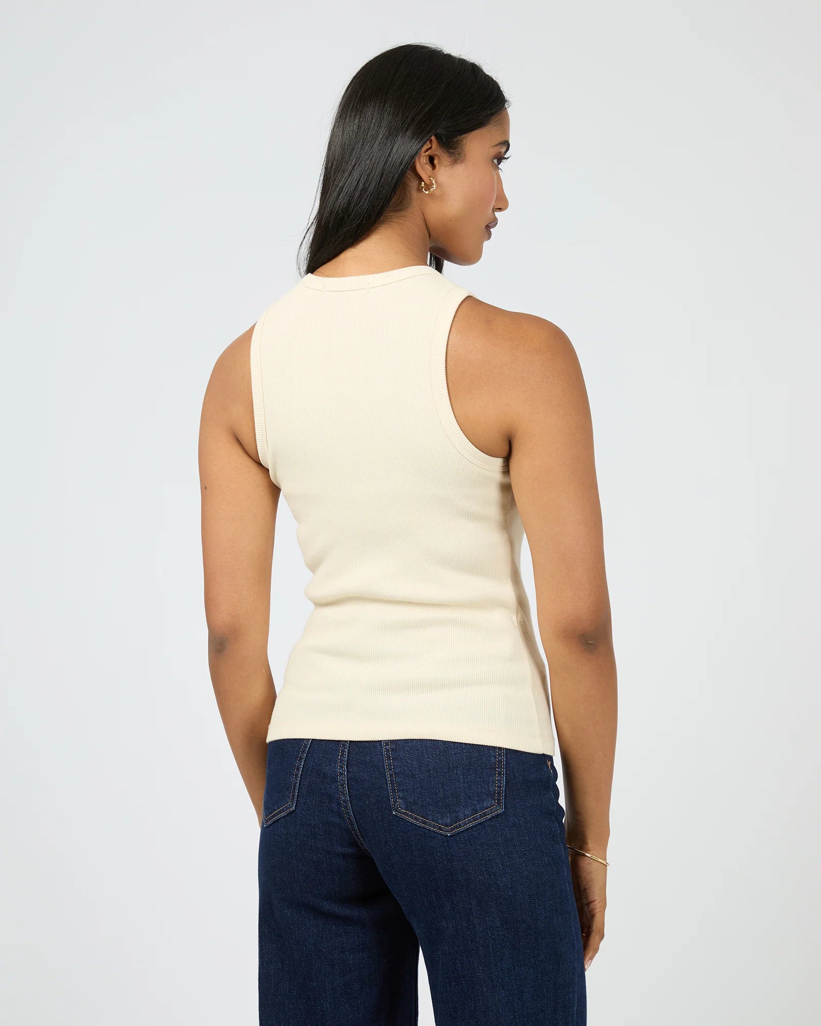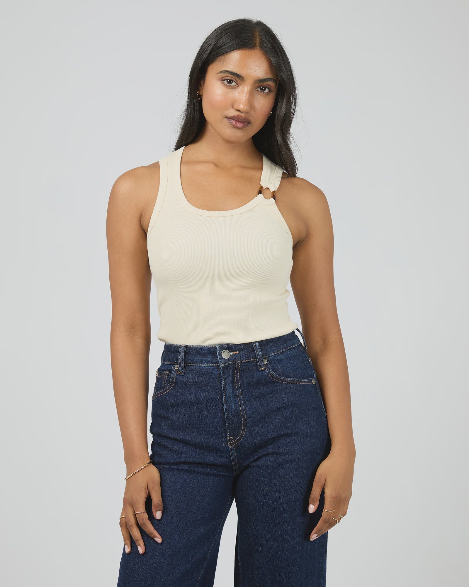 The Sierra Tank will be your go to this summer, the perfect mix of simplicity and style that were sure will become a wardrobe favourite. Made from a soft and comfortable cotton fabrication, this rib tank features a scooped neckline, fitted silhouette and a eye-catching tortoiseshell hardware detail on the strap. Pair with some denim bottoms for a more casual look or with some dress pants and heels for a fun night out.