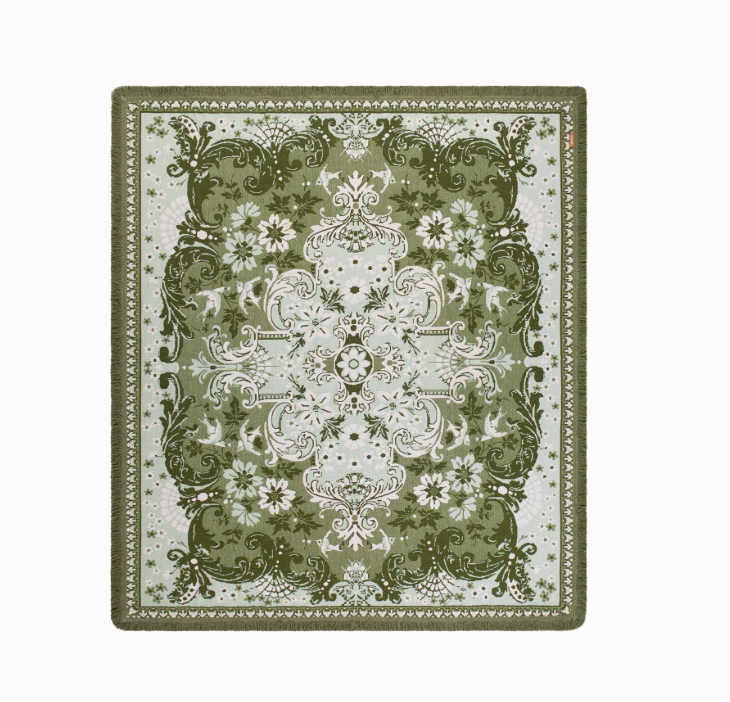 Our Ornate Floral Throw is a new dreamy green Fern colour to our Ornate ginger and Ornate Rosè, long time favourites of our Wandering Folk community. It features a vintage inspired woven, floral design with coloured cotton fringing.