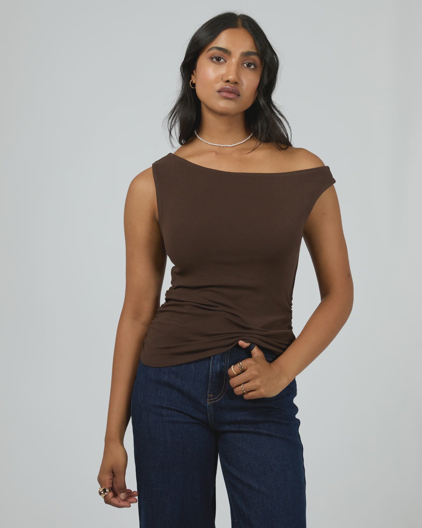 • Load image into Gallery viewer, Kylie Off shoulder Top - Brown
