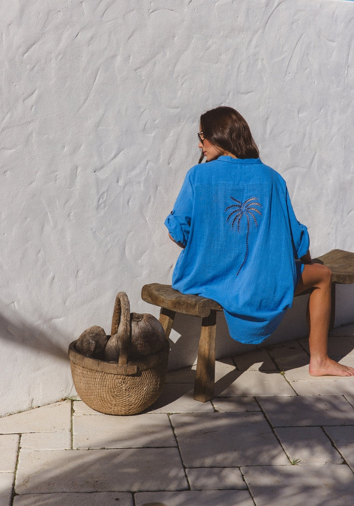 Palm Shirt Dress - Ocean